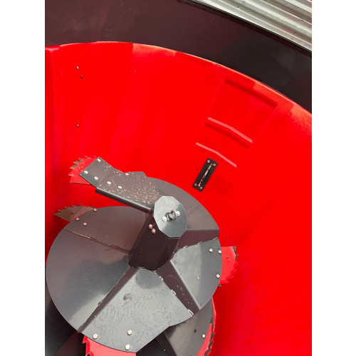 Основной рабочий орган - вертикальный конусообразный шнек, в центре бункера с установленными на него ножами. Шнек с ножами - обеспечивает разрыхление грубых кормов в рулонах и больших тюках, измельчение длинных стеблей, равномерное измельчение всех компонентов нормальной и повышенной влажности.